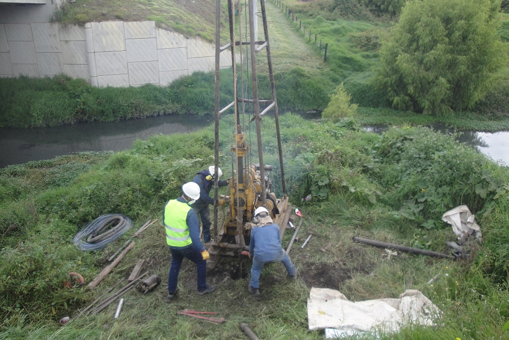 Se realizan sondeos con equipo mecánico, en cada una de ellos se determinará la estratigrafía del suelo; en los suelos cohesivos de consistencia blanda a firme se tomarán muestras inalteradas con tubos Shelby y se efectuarán ensayos de veleta de campo; en los suelos granulares o cohesivos de consistencia dura se efectuará el ensayo de penetración estándar (SPT).